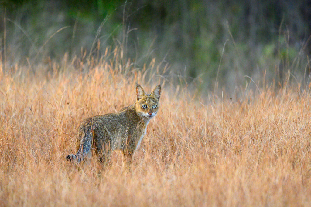 A Pallas' cat prowls through long grass looking for rodents © Otgonbayar Baatargal