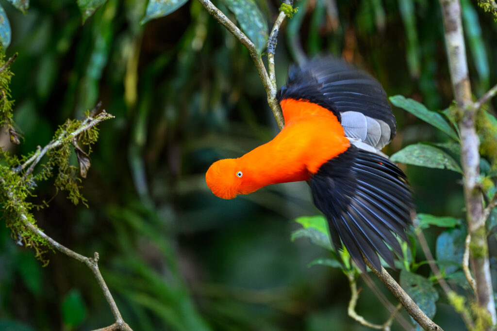 The Andean cock-of-the-rock can be seen a lek sites in Ecuador and Peru. This male is in full display © Nick Garbutt